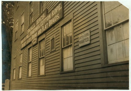 Photo Boy and Girl Wanted. Printed permanent sign. Have reputation of employing mostly children. Location: Fall Overview